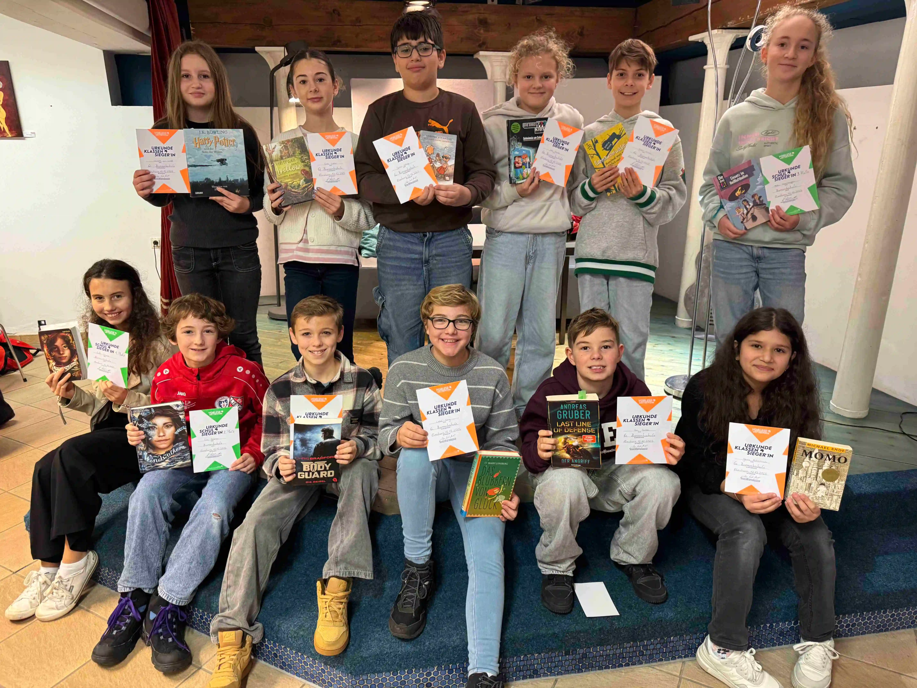 Am Ende setzte sich Lielle Schulze durch. Sie fesselte das Publikum und die Jury mit einem Auszug aus der beliebten Woodwalkers-Reihe von Katja Brandes. Den zweiten Platz belegte Fine Brümmer, die aus Windwalkers, ebenfalls einer Reihe von Katja Brandes, las und mit ihrem ausdrucksstarken Vortrag begeisterte. Den dritten Platz sicherte sich Malia Ossenbrüggen mit einem spannenden Ausschnitt aus Die drei !!! – Einsatz im Heißluftballon.