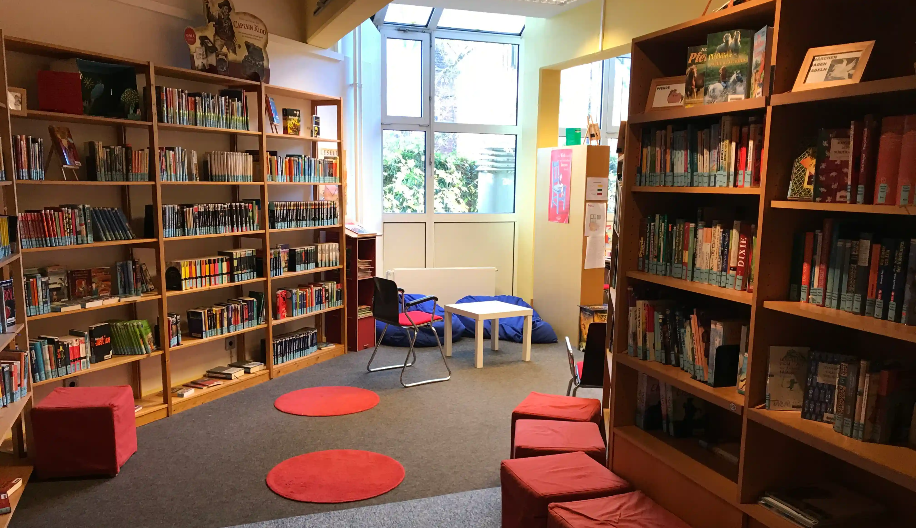 Mit knapp 5.000 Büchern ist das Angebot mindestens genauso vielfältig wie die Schüler an unserer Bismarckschule. Doch nicht nur Fantasiewelten können hier entdeckt werden, auch spannende Sachbücher und fremdsprachliche Lektüre finden die Kinder der Klassen 5–8 in gemütlicher Atmosphäre. Wer gleich beim Stöbern von einem Buch gefesselt wird hat es nicht weit und kann in unserer gemütlichen Leseecke voll und ganz in die Geschichte abtauchen.